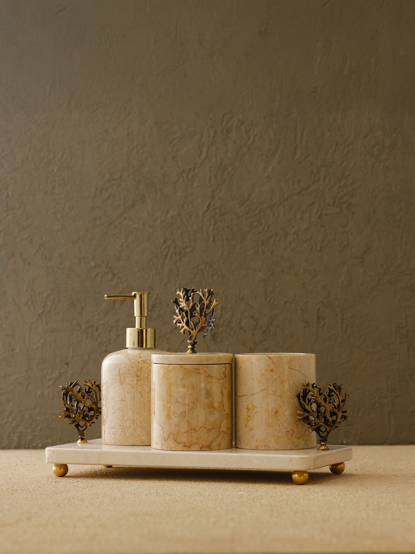 Yeni Mercanlı Banyo Seti(Tepsi, Diş Fırçalık, Kutu, Sıvı Sabunluk)
